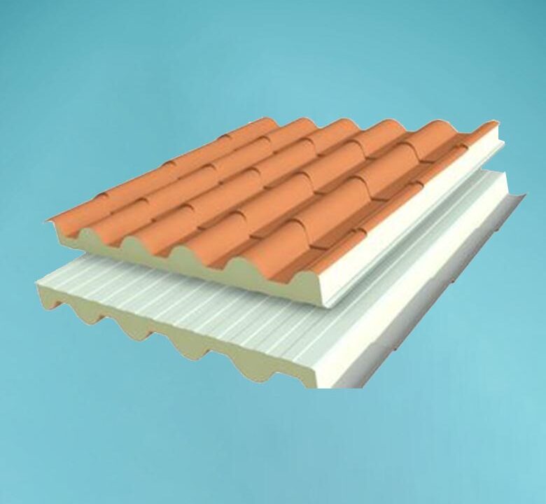 El panel tipo teja es un tipo de panel sandwich utilizado en la construcción de cubiertas con apariencia de teja. Está compuesto por dos láminas de acero galvanizado o prelacado y un núcleo aislante, generalmente de poliuretano. El diseño del panel tipo teja imita la apariencia de las tejas cerámicas, además, el panel tipo teja tiene buenas propiedades de aislamiento térmico y acústico
